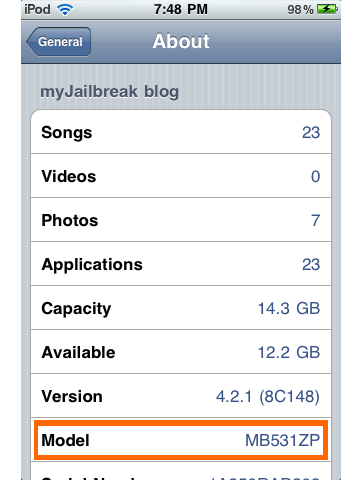 همانطور که مشاهده میکنید iPod touch 2g من MB مدل است : )